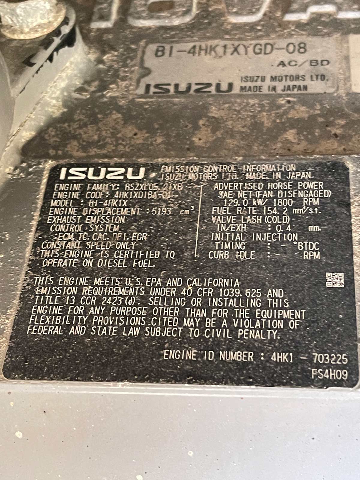 EPA Tier 3 Isuzu 4HK1 Engine