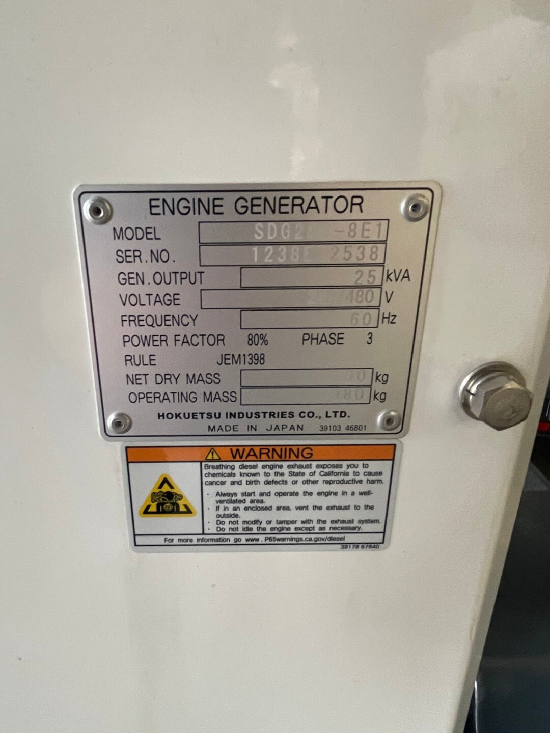 Generator Set Details