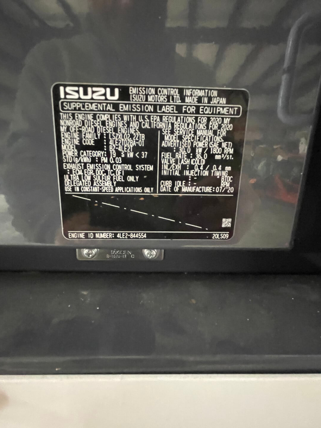 EPA Tier 4 Isuzu 4LE2T Diesel Engine