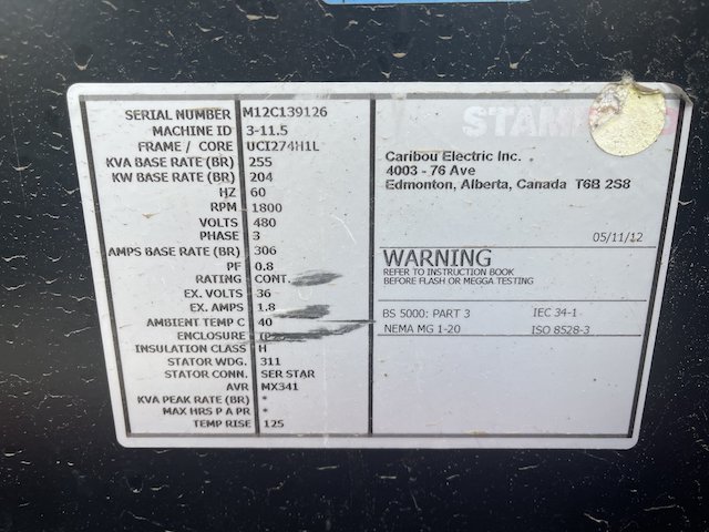 200 kW Standby / 180 kW Prime