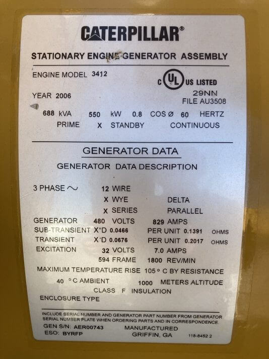 550 kW Standby / 500 kW Prime