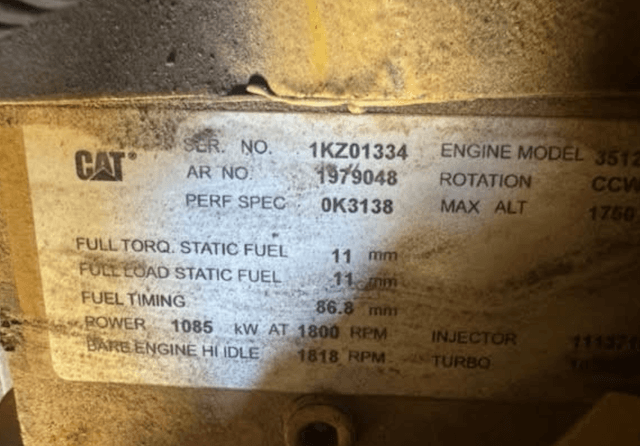 Caterpillar 3512 Engine with Electric Starter. This Caterpillar 3512 (1,100 kW Generator) is for sale and backed by our 30 day warranty. Contact our industrial generator experts with your questions.
