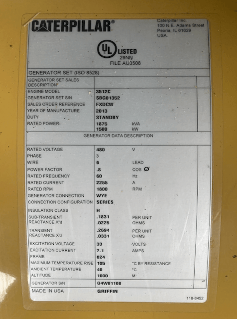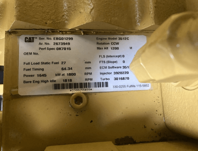 EPA Certified Caterpillar 3512C Diesel Engine