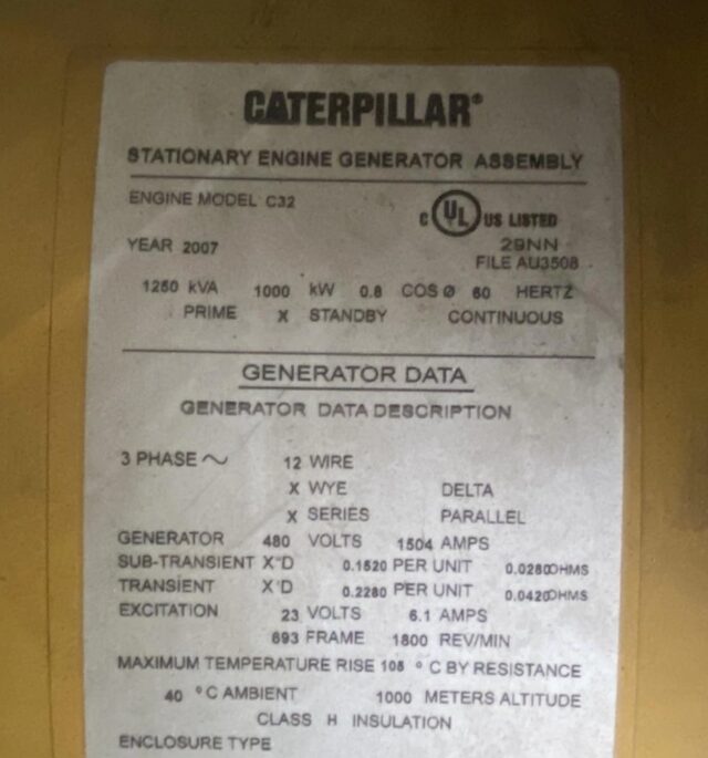 1000 kW Standby / 910 kW Prime