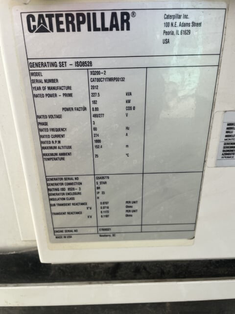 200 kW Standby / 182 kW Prime