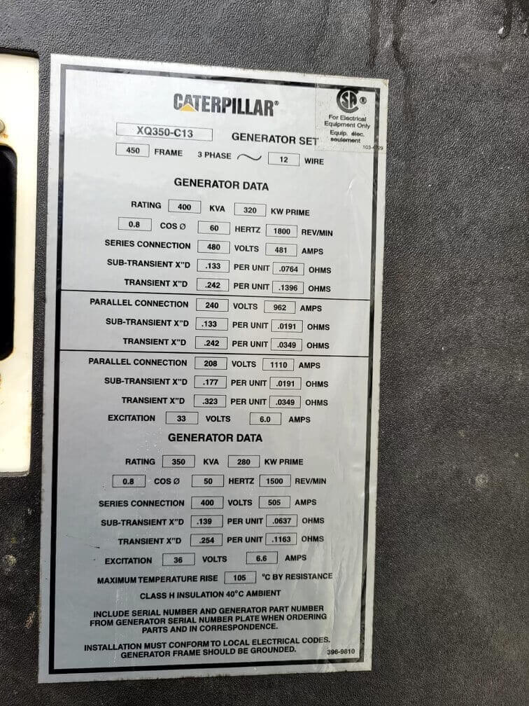 320 kW Prime / 350 kW Standby