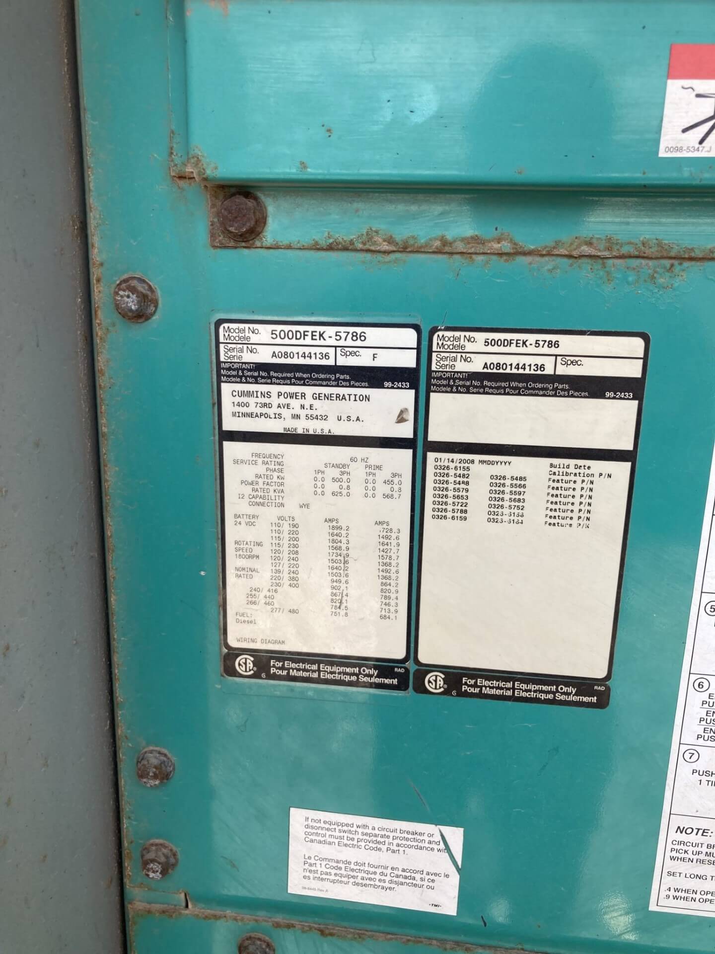 500 kW Standby / 455 kW Prime