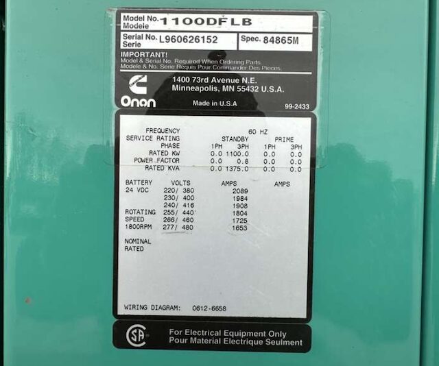 1100 kW Standby / 900 kW Prime
