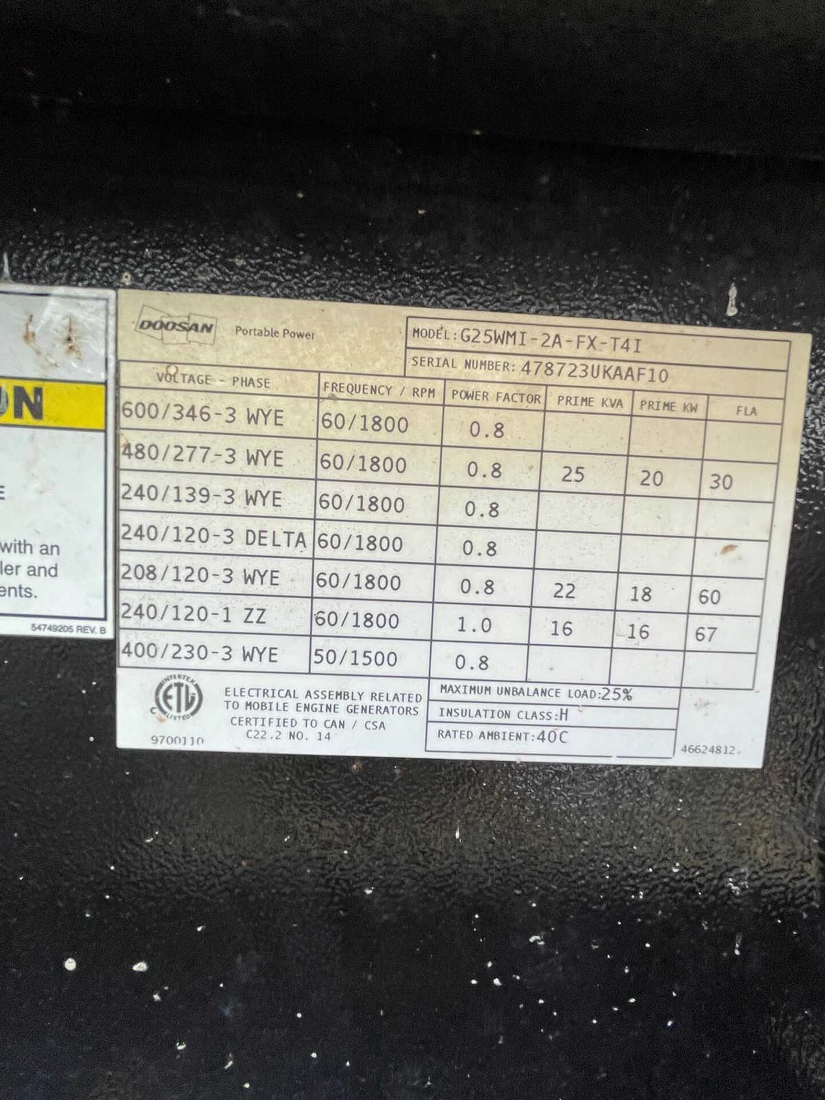 Mitsubishi S4Q2-Y362 Engine with Starter. This Doosan G25WMI (20 kW Generator) is for sale and backed by our 30 day warranty. Contact our industrial generator experts with your questions.