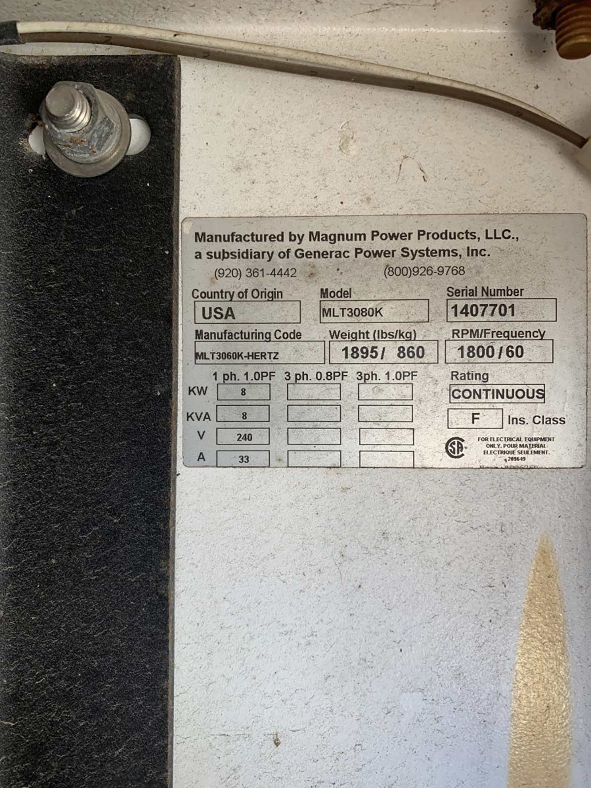 - Generator Manufacturer:Marathon