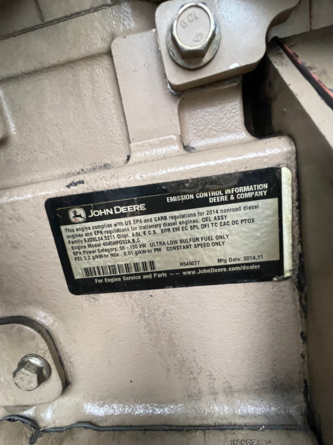 EPA Tier T4i John Deere 4045HFG92A Diesel Engine