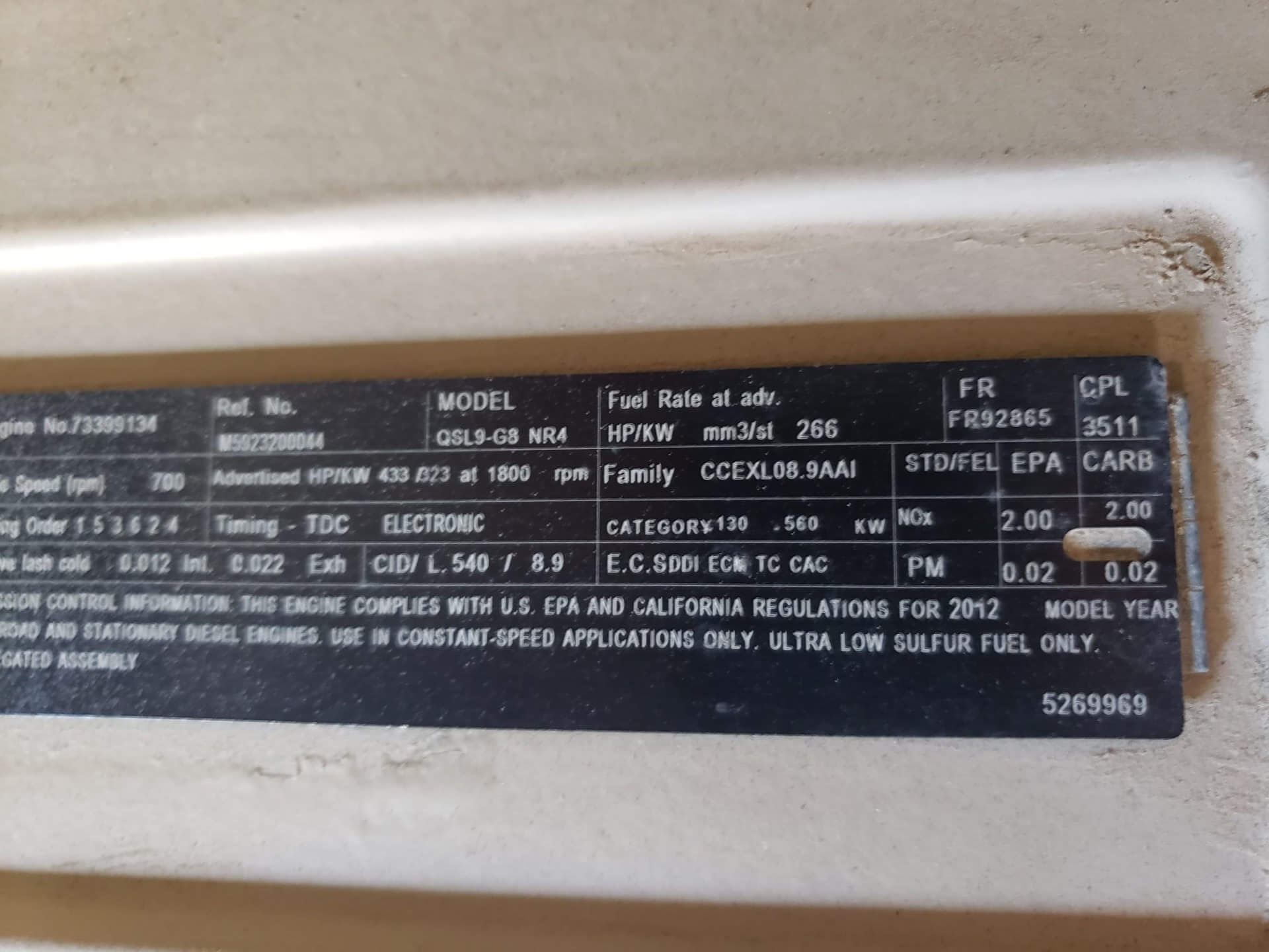EPA Tier 4i Cummins QSL9-G8 Engine