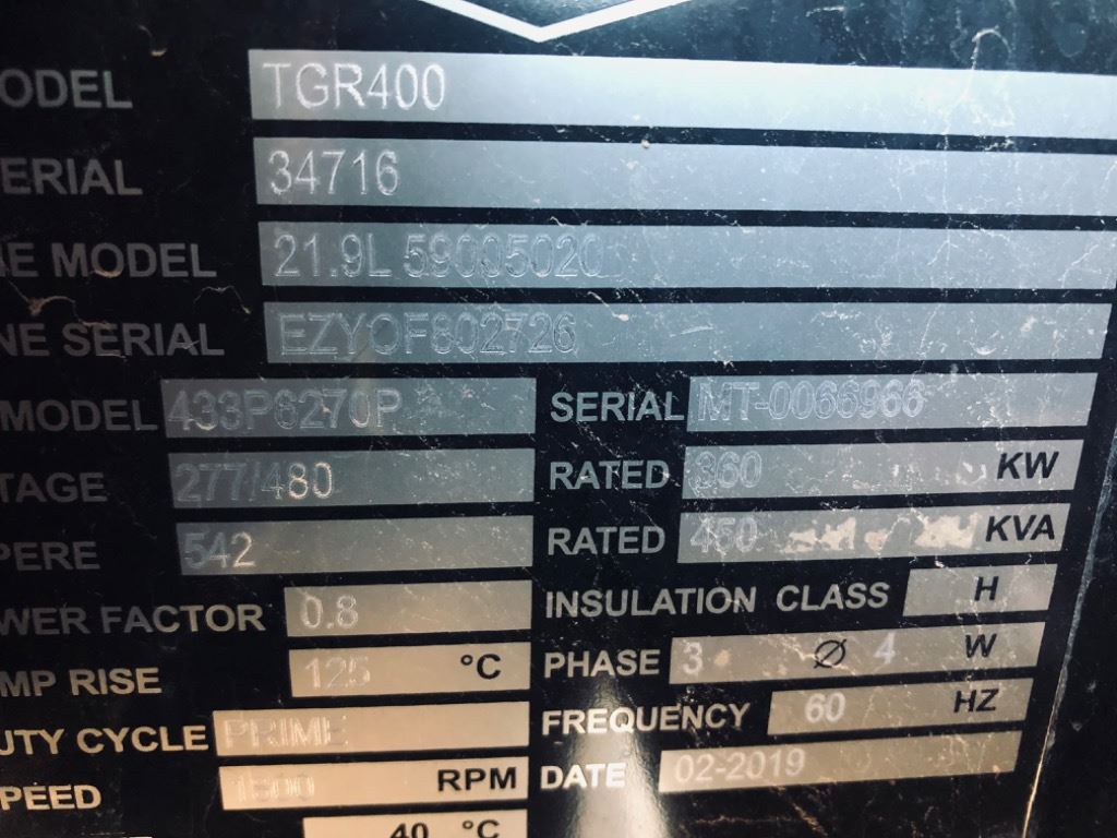 400 kW Standby / 360KW Prime