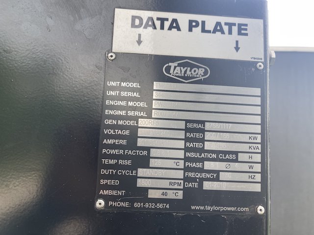 Perkins PW83184 Engine with Electric Starter. This Taylor TMC200 (200 kW Generator) is for sale and backed by our 30 day warranty. Contact our industrial generator experts with your questions.