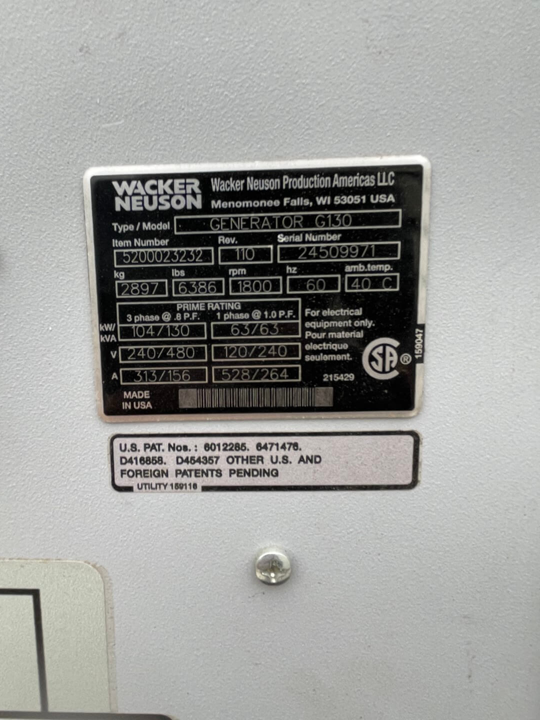 114 kW Standby/ 104 kW Prime